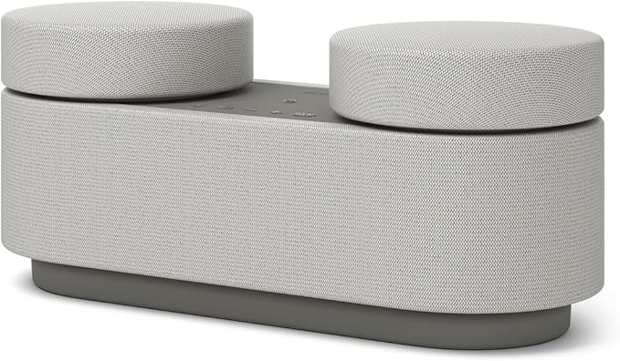 - 普段は1つのスピーカー。上部の円盤を外すと完全ワイヤレスのリアスピーカーになる。